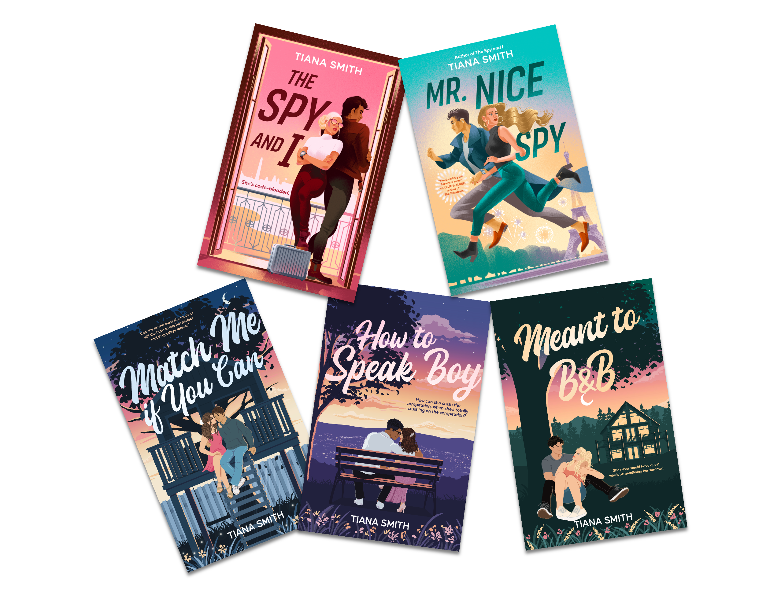 I’m Tiana and I’m the author of closed door adult romcoms and and sweet YA. I have two YA books out now (MATCH ME IF YOU CAN & HOW TO SPEAK BOY) from Macmillan, and two Adult spy romcoms from Berkley/Penguin Random House. The first is called THE SPY AND I and the second is MR. NICE SPY. I’m represented by Eric Smith. Math is my nemesis and chick flicks are my happy place. Supposedly, I’m too old for boy bands and the Disney channel, but I love them anyway. I don’t blog, but if you want a little piece of the action, be sure to subscribe to my newsletter. I like people who subscribe.